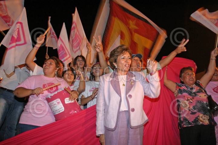 MERIDA, YUCATAN30MARZO2007.-Ana Rosa Payan Cervera por la coalicion Todos Somos Yucatan (Convergencia y PT) festeja cerca de la media noche en el remate de Paseo Montejo junto a su grupo de trabajo, despues del debate sostenido entre los cinco candidatos. FOTO KAHYRI RASHID/CUARTOSCURO.COM