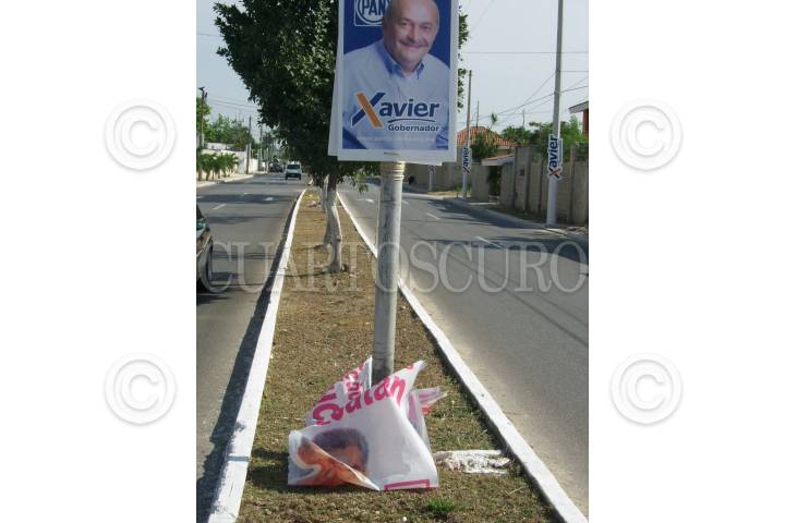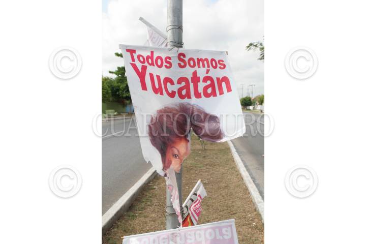 MERIDA, YUCATÁN 12ABRIL2007.- La candidata de la coalición "Todos somos Yucatán", Ana Rosa Payán Cervera denuncia la destrucción de su propaganda por diversos puntos de la ciudad. FOTO: CUARTOSCURO.COM