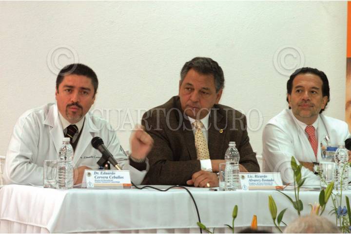 MÉXICO, D.F., 04FEBRERO2009.- El doctor, Eduardo Cervera, el licenciado Ricardo Alvares Tostao y el Doctor Alejandro Mohar durante la ceremonia del acto conmemorativo al día Internacional contra el cancer FOTO: EDUARDO MORALES/CUARTOSCURO.COM