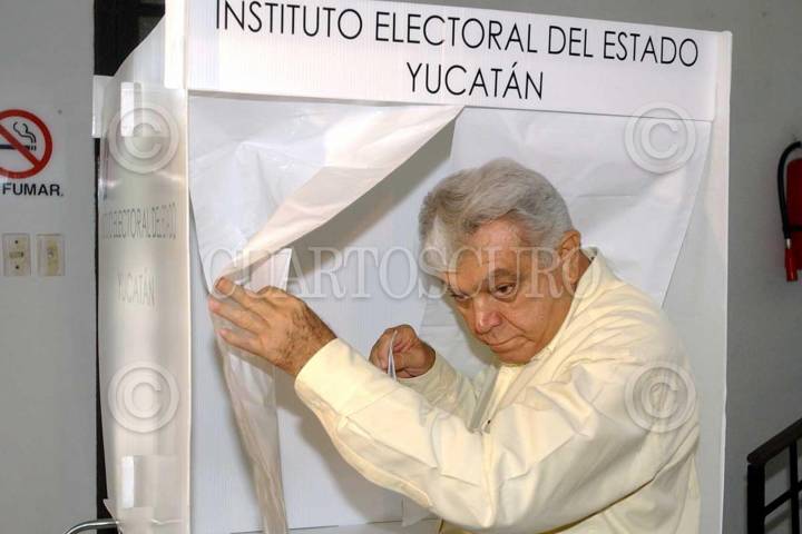 El actual Gobernador del estado de Yucatán, Víctor Cervera Pacheco, acudió a emitir su voto para elegir al nuevo Gobernador de ese estado. FOTO: Elizabeth Ruíz/CUARTOSCURO.COM