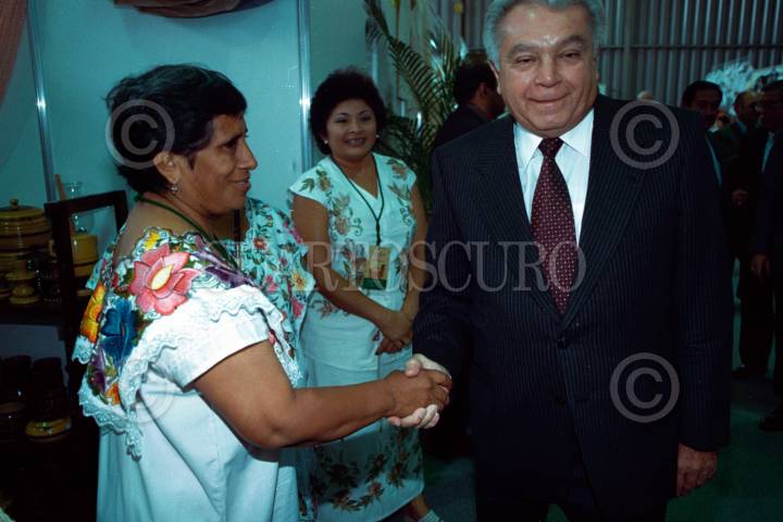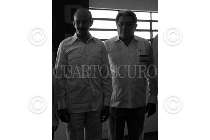 México 18AGOSTO 2004.- El ex gobernador de Yucatán, Víctor Cervera Pacheco, falleció la mañana de hoy víctima de un infarto, a los 68 años de edad. En imagen de archivo del 19 de octubre de 1987 Carlos Salinas y Cervera Pacheco en Yucatán. FOTO: PEDRO VALTIERRA/CUARTOSCURO.COM