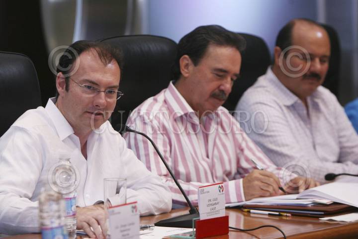 CHIHUAHUA, CHIHUAHUA, 21AGOSTO2012.- Luis Videgaray, coordinador general de políticas públicas del PRI, durante su reunión plenaria de la LXII Legislatura. FOTO: CUARTOSCURO.COM