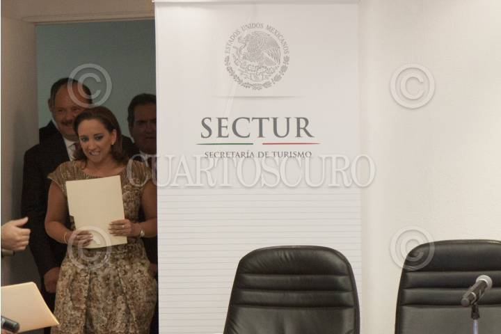 MÉXICO, D.F, 04ABRIL2013.- Claudia Ruíz Massieu, secretaria de Turismo, encabezó la firma de convenio de reasignación de recursos con los gobernadores de Oaxaca, Aguascalientes, Chihuahua y Jalisco. FOTO: MOISÉS PABLO /CUARTOSCURO.COM