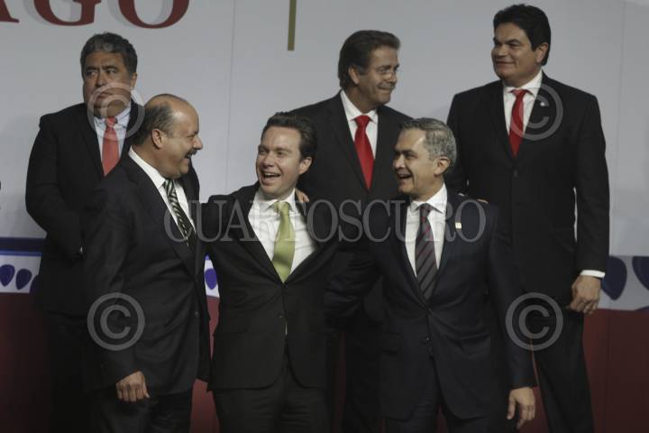 PUEBLA, PUEBLA, 26FEBRERO2014.- Los gobernadores César Horacio Duarte Jaquez, Chihuahua, Manuel Velasco Coello, gobernador de Chiapas, Miguel Ángel Mancera, Jefe de Gobierno, durante la XLVI Reunión Ordinaria Conferencia Nacional de Gobernadores Puebla 2014 (CONAGO). Carlos Lozano de la Torre, gobernador de Aguascalientes, fue designado como nuevo presidente de la Conago. FOTO: HILDA RÍOS /CUARTOSCURO.COM
