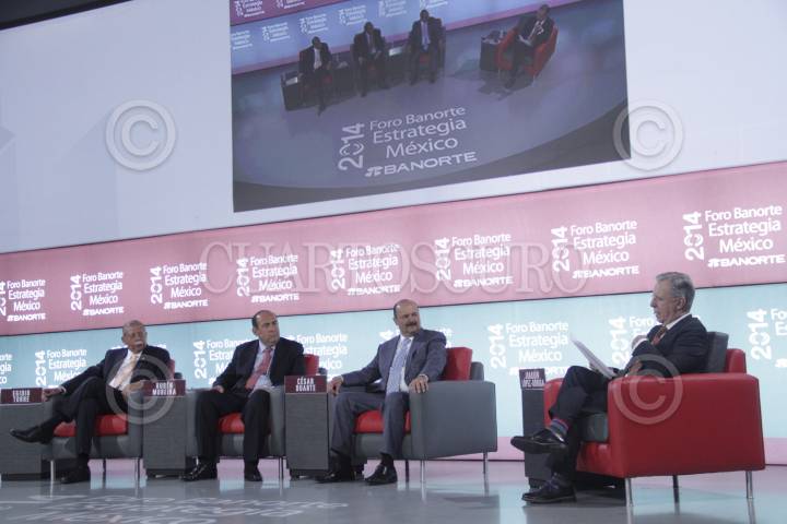 MÉXICO, D.F., 21MAYO2014.- Los gobernadores Egidio Torre Cantú, Tamaulipas, Rubén Moreira, Coahuila, César Horacio Duarte Jaquez, Chihuahua, durante su participación en el Foro Banorte Estrategia México, el cual fue moderado por el periodista Joaquín López-Doriga. FOTO: MOISÉS PABLO /CUARTOSCURO.COM