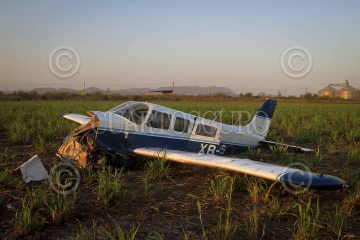 CULIACAN, SINALOA, 18MAYO2012.- Una aeronave tipo cessna de color blanco con azul matrícula XB-VS se desplomo en un sembradio de maíz 200 mts de la carretera Vitaruto Culiacancito. En el lugar no se encontró a los tripulantes, pero se presume que resultaron heridos, ya que se encontraron rastros de sangre en ambas puertas principales, cabe señalar que supuestamente la matricula de la aeronave es falsa según la información proporcionada por las autoridades. FOTO: CORTESIA /CUARTOSCURO.COM