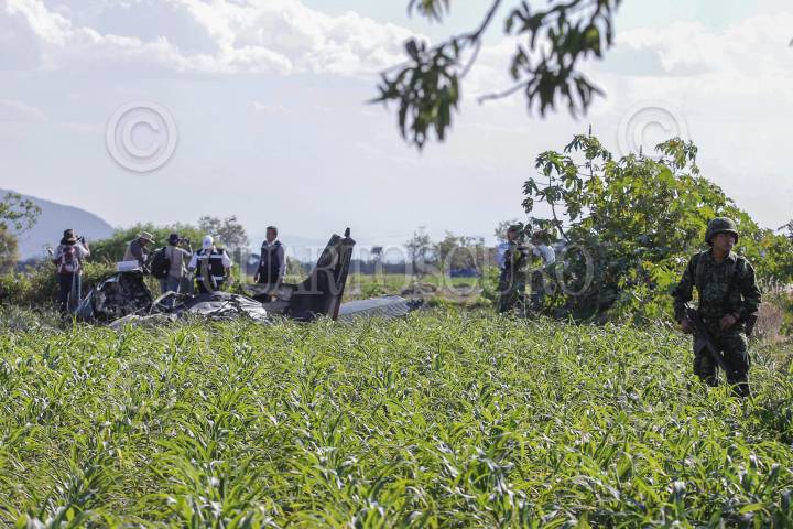 XALATLACO, ESTADO DE MÉXICO, 29MAYO2010.- Dos personas perdieron la vida tras desplomarse una avioneta tipo Cesna con matrícula XBXTX el día de ayer en la sierra de Xalatlaco, dicha avioneta salio del aeropuerto internacional de Toluca. Al lugar elementos del ejercito, policia estatal y municipal acordonaron la zona del desastre. FOTO: LUIS CARBAYO/CUARTOSCURO.COM