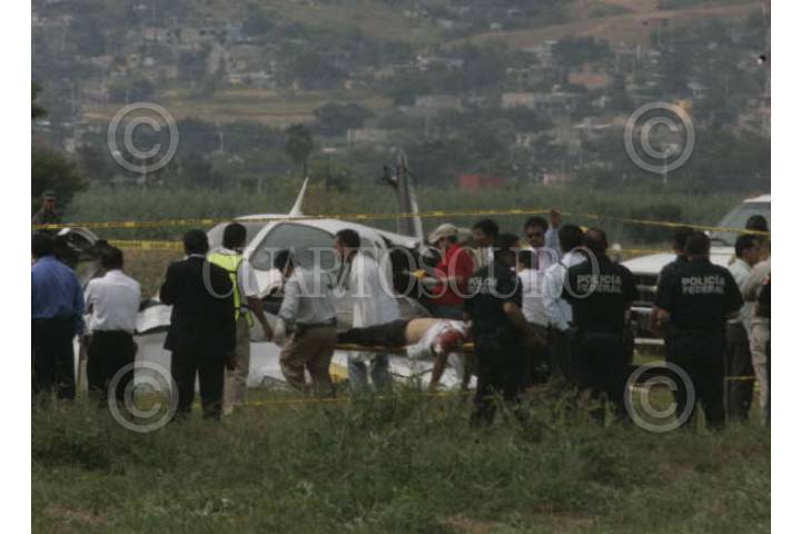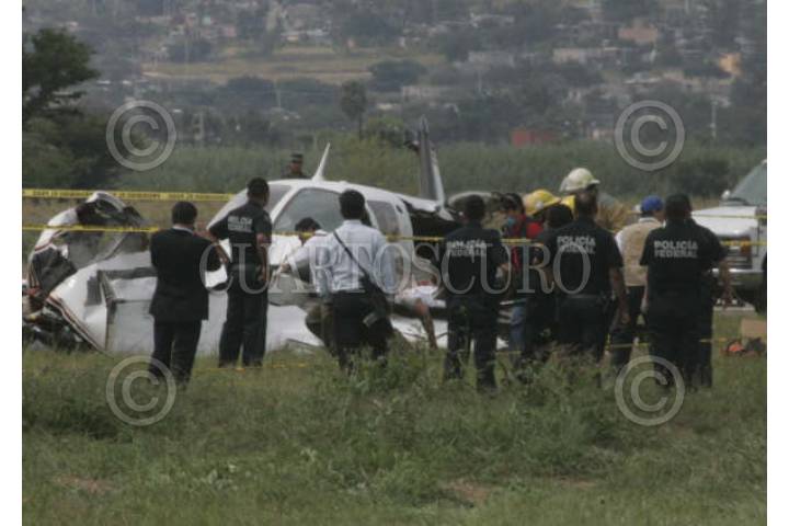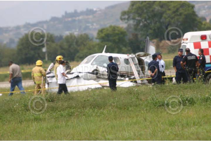 OAXACA, OAXACA, 06OCTUBRE2008.- Una avioneta particular tipo Cessna que intentaba alzar el vuelo en el aeropuerto Internacional "Benito Juárez" de Oaxaca se desplomó dejando como saldo dos personas muertas. FOTO: MAX NUÑEZ/CUARTOSCURO.COM