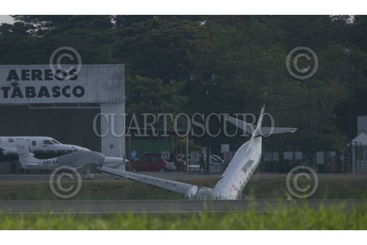 VILLAHERMOSA, TABASCO, 24OCTUBRRE2012.- Una aeronave tipo Cessna con matricula XA-AFI sufrio un despiste al ser mal maniobrada por su piloto en el aeropuerto internacional Carlos Rovirosa Pérez; hasta el momento autoridades de protección civil no reportan personas muertas ni lesionadas. FOTO: MARCO POLO GUZMÁN HERNÁNDEZ/CUARTOSCURO.COM
