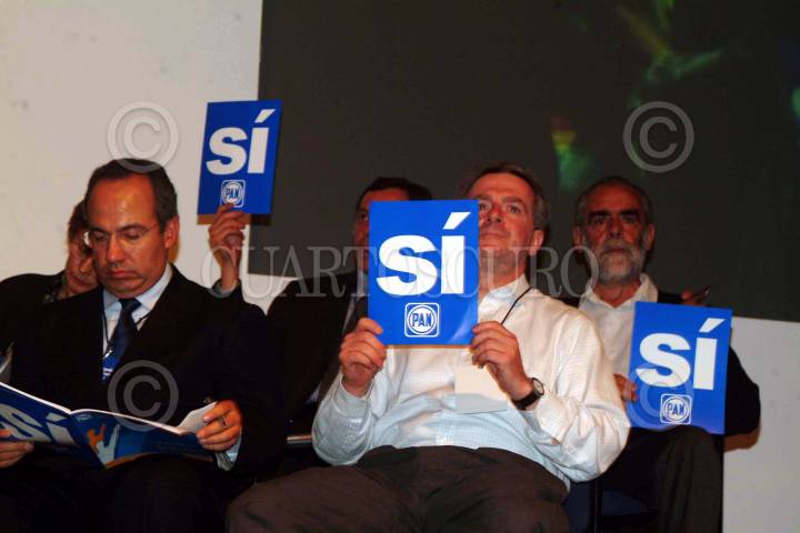 QUERETARO, QUERETARO30ABRIL2004.- Durante la Asamblea nacional del PAN, se reunierón Felipe Calderón, Santiago Creel y Diego Fernandez de Cevallos. FOTO: Iván Stephens/CUARTOSCURO.COM