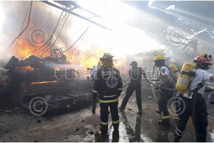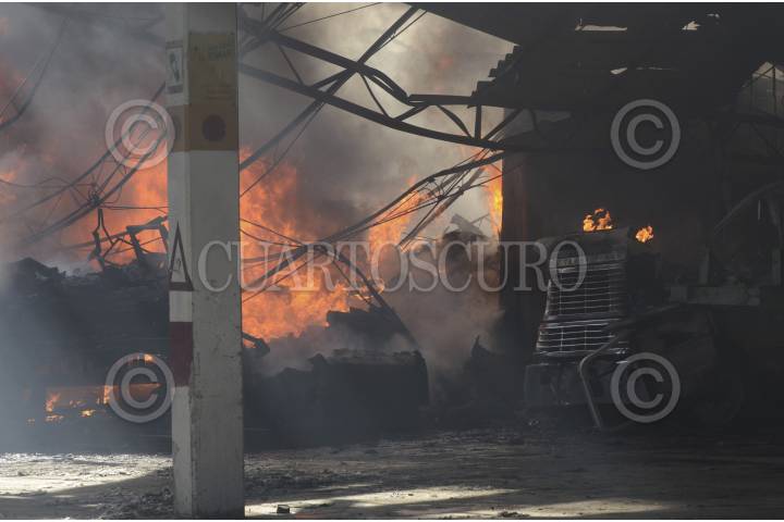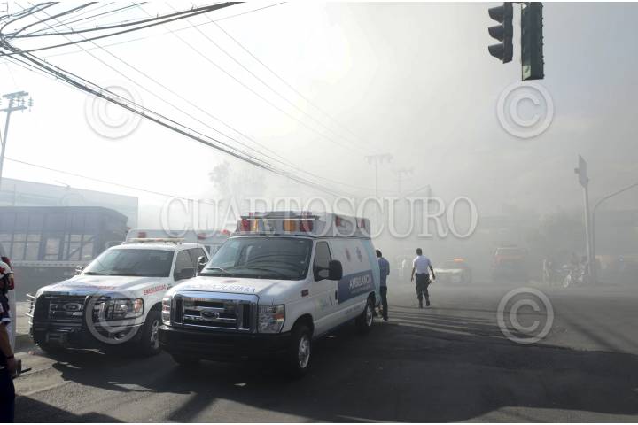 MÉXICO, D.F., 23MARZO2013.- Un incendio se suscitó en la empresa Dupoint ubicada en sobre avenida Caylán y Maravillas en la colonia Ferreria, el fuego dejo una intensa campa de humo en los alrededores. FOTO: LUIS CARBAYO /CUARTOSCURO.COM