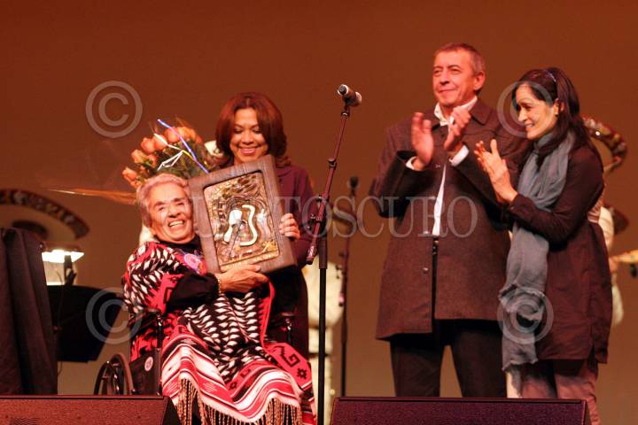La cantante Chabela Vargas se presentó esta noche en el Zócalo capitalino, en la gráfica aparece en compañía de Rosario Robles.FOTO:Germán Hernández/CUARTOSCURO.COM