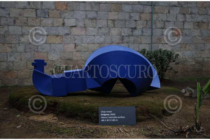 CIUDAD DE MÉXICO, 07DICIEMBRE2023.- El artista plástico Enrique Carbajal mejor conocido como el maestro “Sebastian” ofreció recorrido en su exposición Chac Mool en el Museo Nacional de Antropología. FOTO: ANDREA MURCIA /CUARTOSCURO.COM