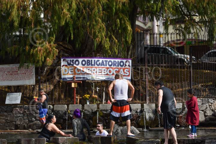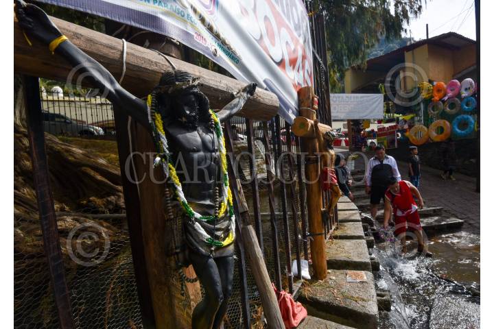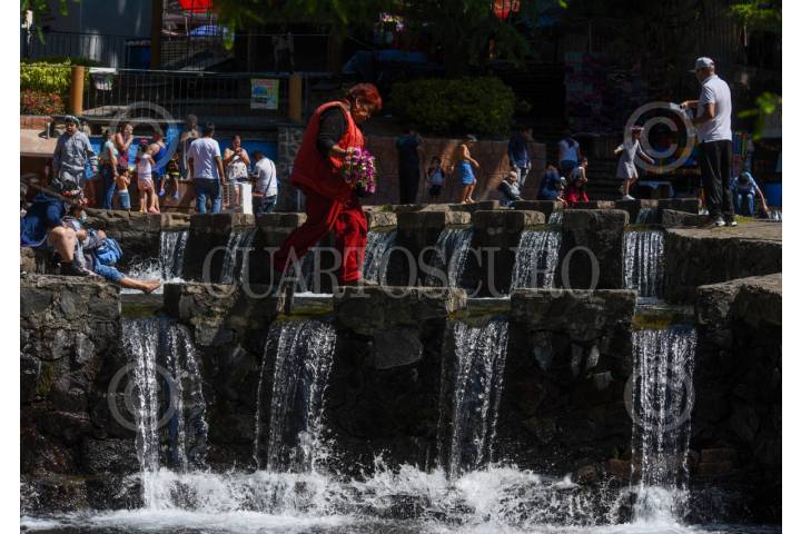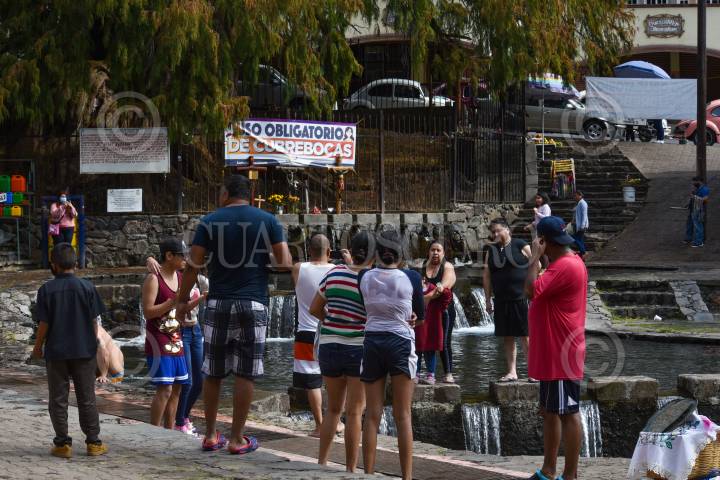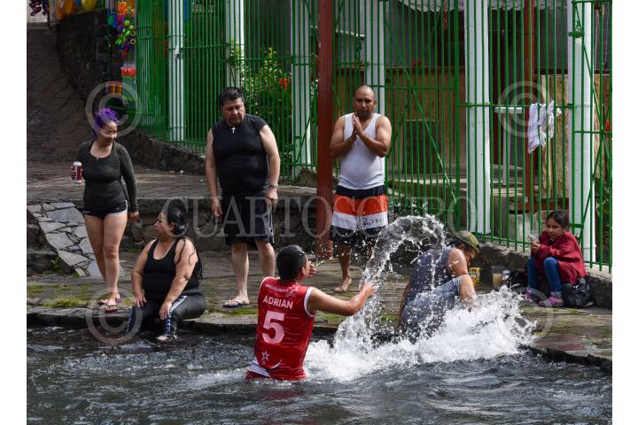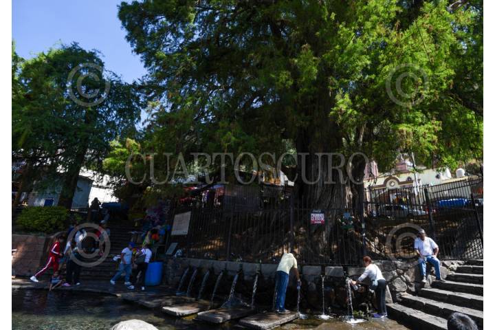 OCUILAN, ESTADO DE MÉXICO, 22 DE MARZO 2024.- El Ahuehuete de Chalma es uno de los puntos importantes de visita en el camino al Santuario del Señor de Chalma, en este lugar brota agua en la cual los visitantes se refrescan o toman un chapuzón para purificarse, y es parte importante del Turismo Religioso en el municipio de Ocuilan, el agua de este lugar es cristalina y nos recuerda lo importante que es cuidar este recurso, sobre todo en el marco del Día Mundial del Agua. FOTO: CRISANTA ESPINOSA AGUILAR /CUARTOSCURO.COM