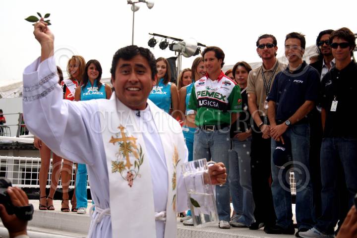 MÉXICO, D.F., 09NOVIEMBRE2006.- La pista del Autódromo Hermanos Rodríguez, en donde se correrà la última jornada de la Champ Car, fue bendecida junto con algunos de los pilotos que participaràn en la competencia, como el mexicano Marios Dominguez. FOTO: ISAAC ESQUIVEL/CUARTOSCURO.COM