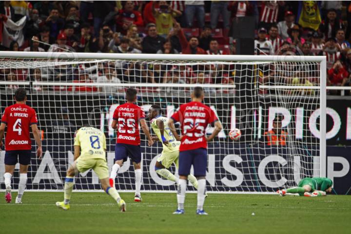 ZAPOPAN, JALISCO, 06MARZO2024.- Julián Quiñonez jugador de América, celebran su su anotación, esto en partido correspondiente a los Octavos de final de Vuelta de la Concacaf Champions Cup, en donde se enfrentan los equipos de Chivas (México) vs América (México), en juego que se lleva a cabo en el Estadio Akron, el marcador al momento es de 1-0, a favor del equipo visitante. FOTO: FERNANDO CARRANZA GARCIA / CUARTOSCURO.COM