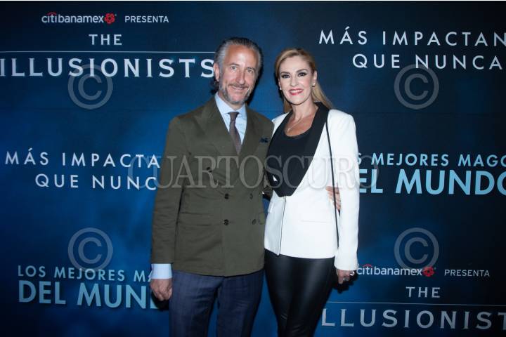 Enrique Rivero Lake y Chantal Andere a su paso por la alfombra roja por el estreno del espectáculo de magia "The Illusionists", que se presenta en el Teatro Telcel.