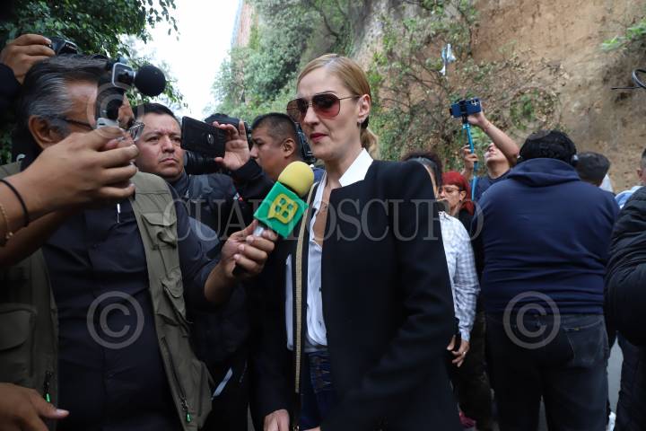 Chantal Andere a su llegada al funeral de la conductora Talina Fernández en el que fuera si domicilio, al poniente de la Ciudad de México.
