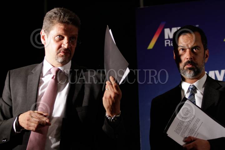 MÉXICO, D.F., 19MARZO2015.- Felipe Chao, vicepresidente de MVS, y José Antonio Vega, director de noticias de MVS, anunciaron en conferencia de prensa que, a nombre de MVS Radio, la relación laboral con la periodista Carmen Aristegui ha terminado. FOTO: IVÁN STEPHENS /CUARTOSCURO.COM