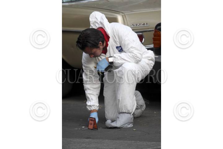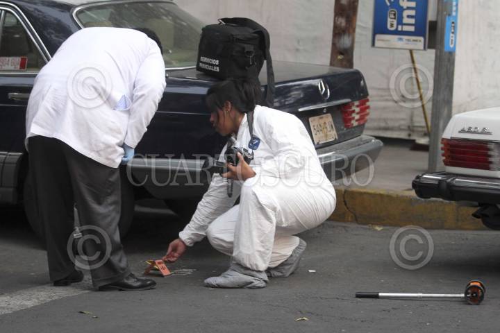 MÉXICO, D.F., 20ABRIL2012.- El General Mario Arturo Acosta Chaparro murió en un hospital esta tarde luego de ser baleado en un taller mecánico ubicado en la esquina de las calles Lago Trasimeno y Lago Como, en la colonia Anahuac. El general retirado, recibió tres balazos en la cabeza y falleció mientras era trasladado al Hospital de la Cruz Roja en Polanco. Peritos de la PGJDF laboraron en el lugar con casquillos y la camioneta en la que viajaba el General. FOTO: LUIS CARBAYO /CUARTOSCURO.COM