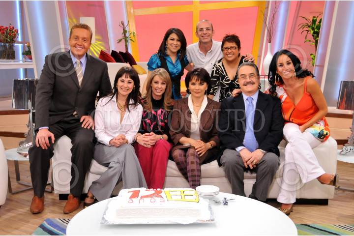 MÉXICO, D.F., 24ENERO2008.- El programa de espectaculos Ventaneando, encabezado por Paty Chapoy, cumplio doce años por lo que la producción partió un pastel para celebrar. FOTO: CUARTOSCURO.COM