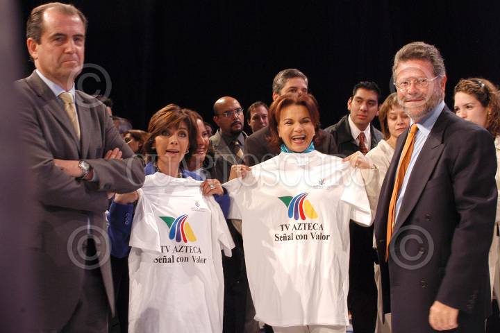 MEXDF02AGOSTO2004.- Pablo Latapì, Ana Marìa Lomelì, Paty Chapoy y Sergio Sarmiento, periodistas de Tv Azteca asistieròn a la ceremonia de despedida de la producción que transmitira juegos olimpicos desde Atenas, Grecia. FOTO: Germán Romero/CUARTOSCURO.COM