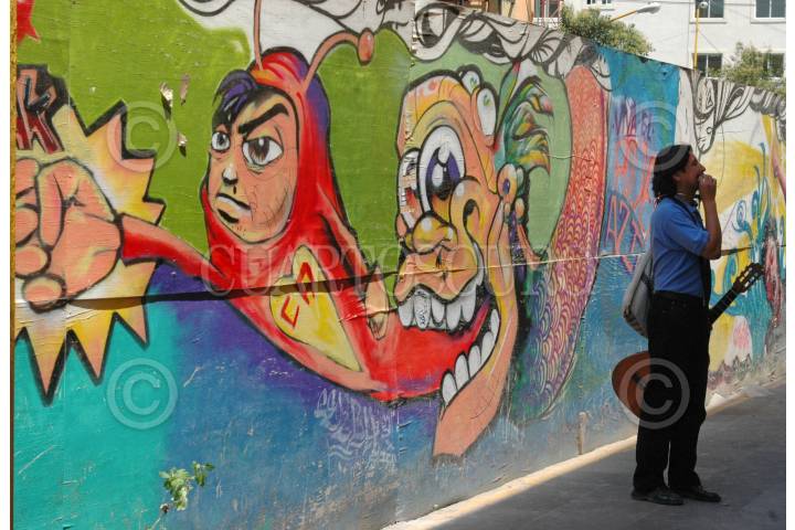 ECATEPEC, ESTADO DE MÉXICO, 17JULIO2009.- Un grafitti del Chapulin Colorado, héroe de la televisión mexicana, se encuentra pintado a espaldas del palacio municipal de Ecatepec, en una barda de madera que cubre las obras del edificio del Centro de Operaciones de Seguridad Pública y Protección Civil municipal. FOTO: MARIO NULO/CUARTOSCURO.COM