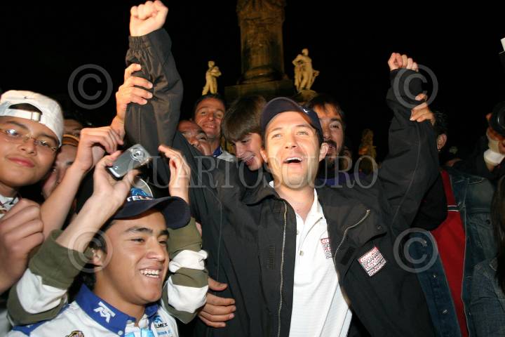 MÉXICO D.F. 04MARZO2006.- Luis el "Chapulin" Díaz durante la celebración en el Ángel tras la victoria de la categoria Gran Am, en el Autodrómo de los Hermanos Rodríguez. FOTO: Rocío Ortiz/CUARTOSCURO.COM