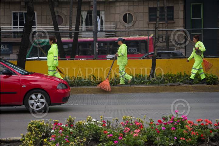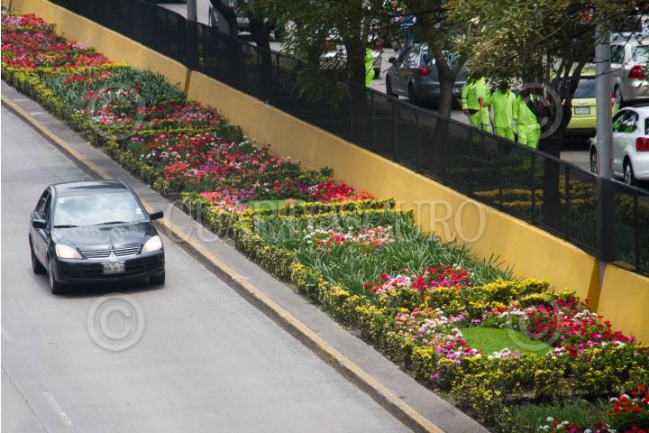 CIUDAD DE MÉXICO, 10AGOSTO2018.- Trabajadores de limpieza del Gobierno capitalino, realizan limpieza y cuidado de las jardineras del circuito interior, aprovechando el sol de la mañana. FOTO: VICTORIA VALTIERRA /CUARTOSCURO.COM