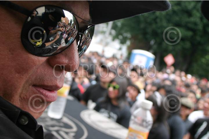 MÉXICO, D.F., 14AGOSTO2010.- El músico rocanrolero mexicano Charly Montana, participó en la mesa de reflexión "La escena del Rock en México", donde se dirijió a cientos de jóvenes en el Tianguis Cultural del Chopo donde comentó sobre las restricciones y represiones que en años pasados se llevaban acabo por parte del estado. FOTO: MISAEL VALTIERRA/CUARTOSCURO.COM