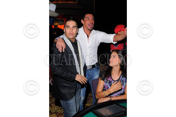 MÉXICO, D.F., 08JUNIO2011.- El cantante de musica tropical, Emir Pavón y el cantante y exgaribaldi, Charly, asisitieron al segundo torneo "Texas Holdem" para la fundación "Código Ayuda" de Gabriela Goldsmith realizado en el Royal Yak del Hipódromo de las Americas. FOTO: FRANCISCO RODRÍGURZ/CUARTOSCURO.COM