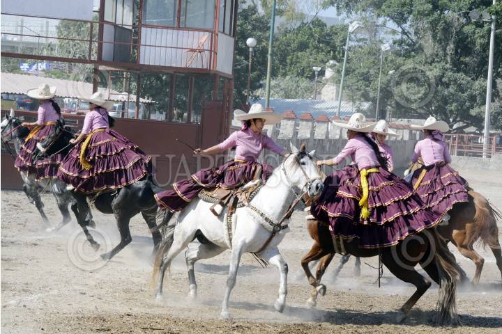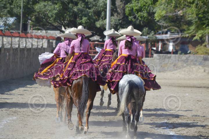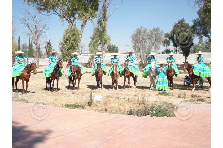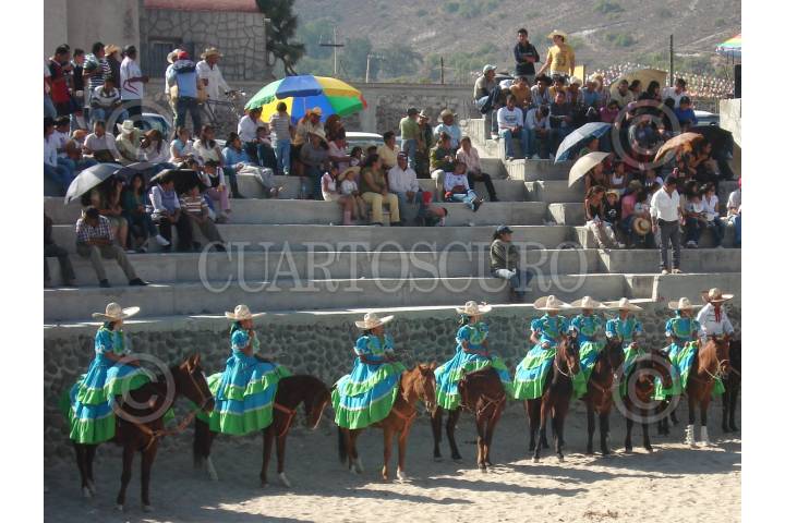 HUEYPOXTLA, ESTADO DE MÉXICO, 10MAYO2009.- Las Escaramuzas de Hueypoxtla son actualmente 10 mujeres jinetes de esta localidadad de entre 13 a 25 años que montan caballos que oscilan entre los 3 y 10 años de edad. Las escaramuzas hacen suertes de charreria, con rutinas que son intermedio en una charreada. Ellas son la parte femenina que enbellecen las suertes charras. Desafortunadamente pese a tener carácter para manejar al caballo, no cuentan con un lienzo local para realizar sus entrenamientos, por lo que esperan apoyo de autoridades municipales y estatales, toda vez que dicho deporte lo practican con gusto, así como sus presentaciones que realizan de forma gratuita sin fines de lucro, así lo dio a conocer Jessica Estefania Olguín Cervantes, escaramuza de 17 años. FOTO: MARIO NULO/CUARTOSCURO.COM