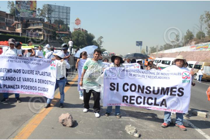 Recicladores se manifestaron bloqueando la autopista México-Pachuca por la prohibición oficial de la expedición de bolsas de plástico en comercios