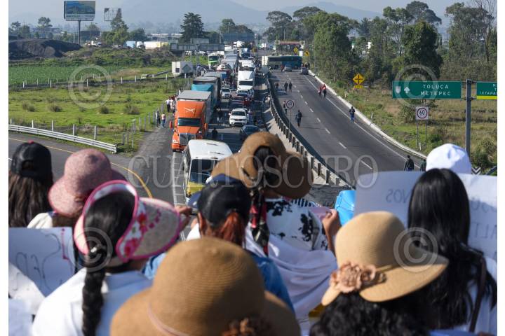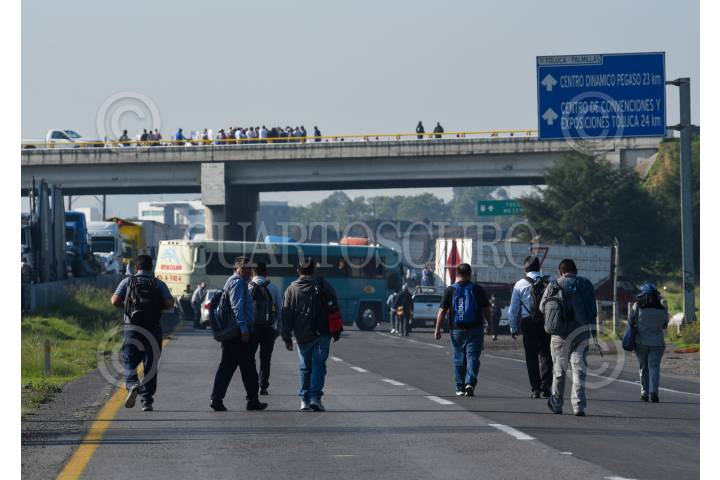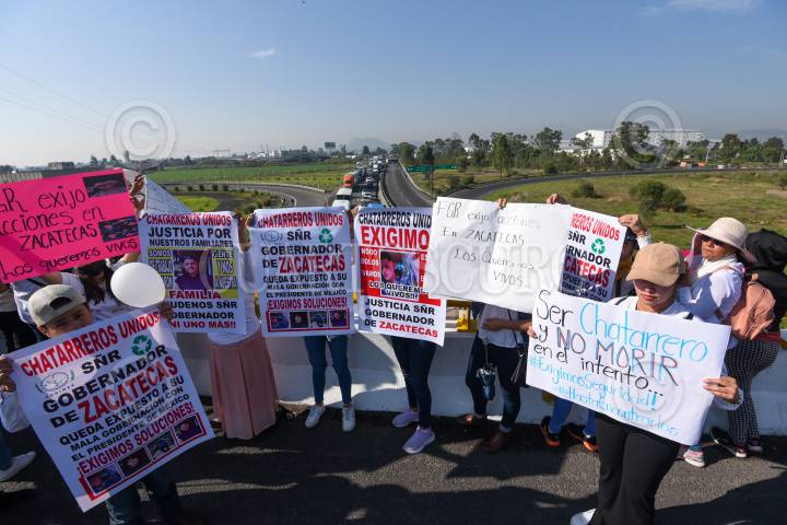 Chatarreros de Toluca bloquearon desde las 7 de la mañana la autopista Toluca-Valle de Bravo y Toluca Atlacomulco exigiendo la investigación de la desaparición de 4 de sus compañeros en el estado de Zacatecas.