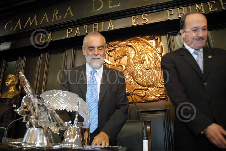 MEXICO D.F 02 MARZO 2005.- Diego Fernández de Cevallos, presidente de la Mesa directiva del Senado y Cesar Chaurand del PRI durante la sesión ordinaria en el recinto del Senado de la República. FOTO: Eunice Adorno/CUARTOSCURO.COM
