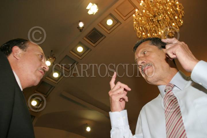 MEXICO, DF 20JULIO2005.- Los senadores Carlos Chauran y Enrique Jackson antes de la sesión extraordinaria del Senado; la sesión se retrasó mas de dos horas por la marcha de sindicalizados del IMSS FOTO: Miguel Dimayuga/CUARTOSCURO.COM
