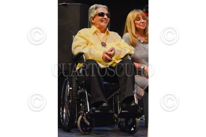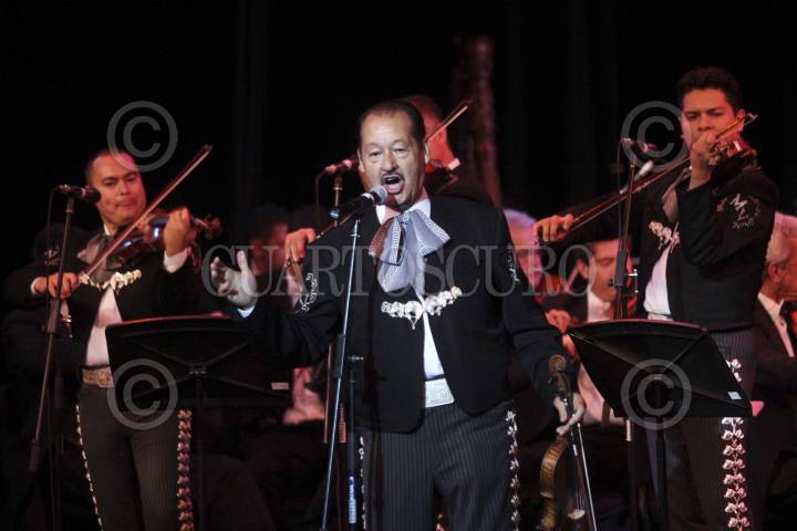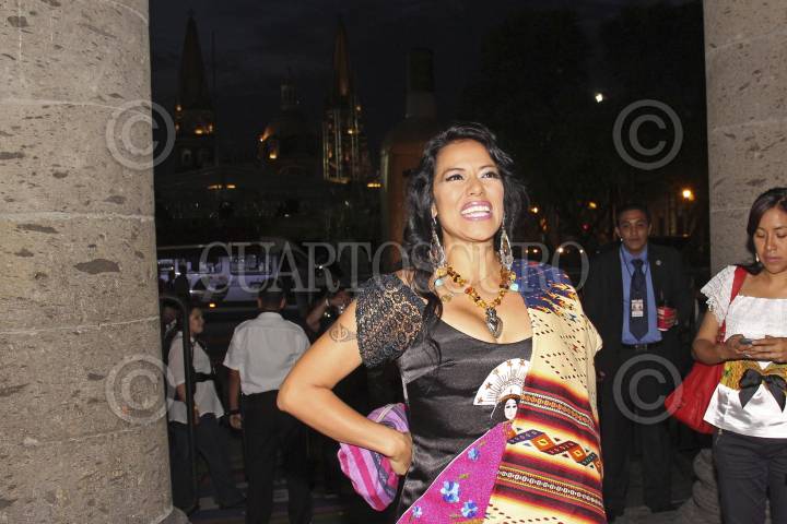 GUADALAJARA, JALISCO, 31AGOSTO2012.- Esta noche en el Teatro Degollado de esta ciudad y en el marco de la edición XIX del Encuentro Internacional del Mariachi y la Charrreria, se llevo un homenaje post mortem a la cantante Costarricense Chavela Vargas, en donde se hizo entrega del máximo Galardón que otorga la Cámara Nacional de Comercio de Guadalajara (CANACO), la estatuilla "Silvestre Vargas" la cual fue entregada de manos de la cantante Lila Down y el presidente de la Canaco Francisco Beckman a el productor de la cantante ya fallecida, Guillermo Sánchez. Dentro del mismo evento la cantante Lila Down recibió la medalla "Pepe Guizar". FOTO: FERNANDO CARRANZA GARCÍA /CUARTOSCURO.COM