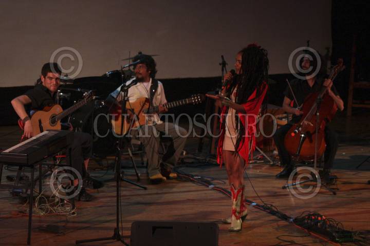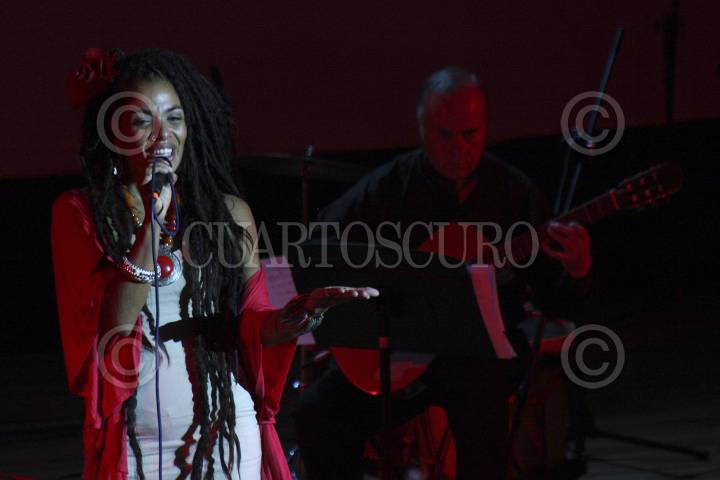 TEPOZTLÁN, MORELOS, 01SEPTIEMBRE2012.- En el auditorio Ilhucalli de Tepoztlán se dieron cita compositores y cantantes para llevar a cabo el homenaje a la difunta Cantante Chavela Vargas quien radico en la entidad. Destacaron las participaciones de: Pambo, Ariane Libertad y Moyenei Valdés. La cantante Pambo interpretó “la Llorona” mientras la venezolana Moyenei cantó “piensa en mi” acompañada de “Los Macorinos”. FOTO: ALMA LAFAYET /CUARTOSCURO.COM