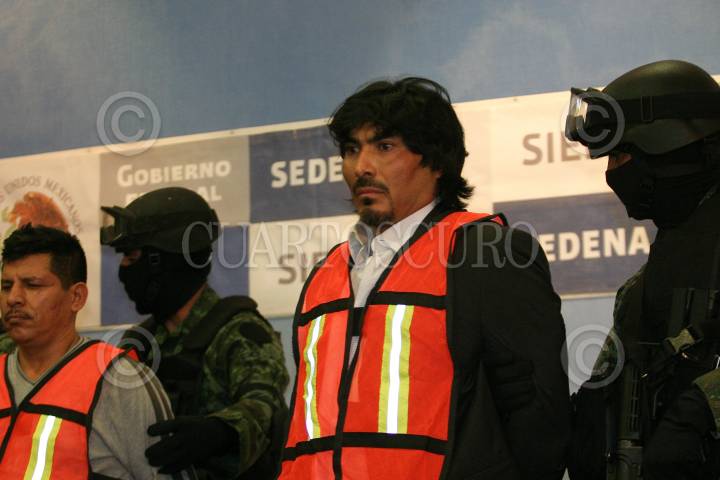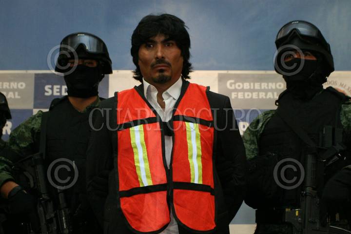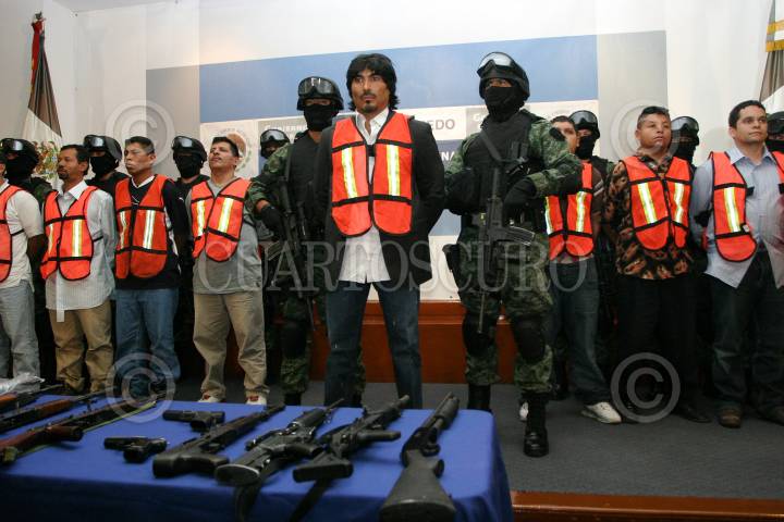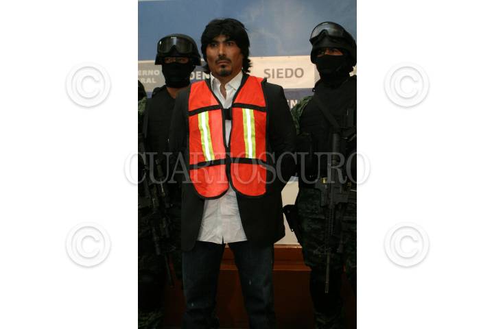 MÉXICO D.F., 22ABRIL2010.- Gerardo Álvarez Vázquez, alias “El Indio” y/o “El Chayan” presunto responsable de controlar la actividad del narcotráfico en los municipios de Naucalpan y Huixquilucan en Estado de México, así como regiones de la Costa Grande y de Acapulco y Guerrero, fue detenido ayer junto con 14 personas más después de un enfrentamiento con elementos del ejercito y el cual fue puesto a disposición de la Subprocuraduría de Especializada en Delincuencia Organizada (SIEDO). FOTO: GUILLERMO PEREA/CUARTOSCURO.COM