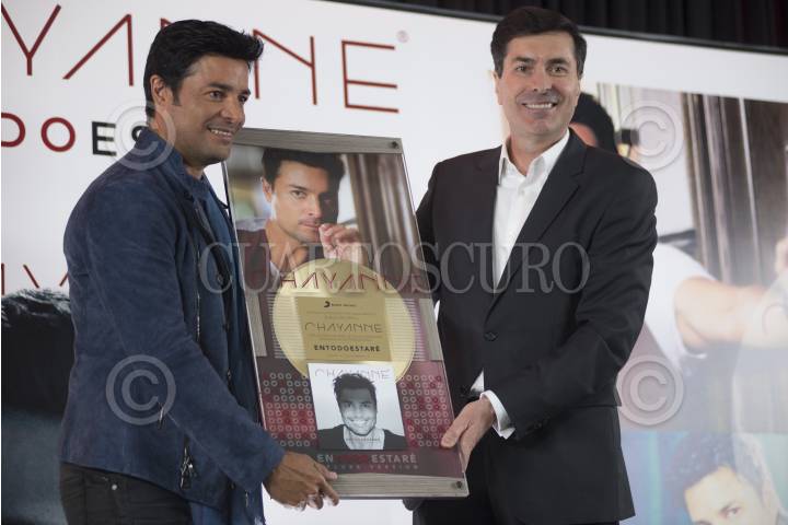 MÉXICO, D.F.,17SEPTIEMBRE2014.- El director de SONY MUSIC México presento a Chayanne el disco de oro obtenido por este nuevo álbum EN TODO ESTARÉ, por la venta de mas de 30 mil unidades. FOTO: ISABEL MATEOS /CUARTOSCURO.COM