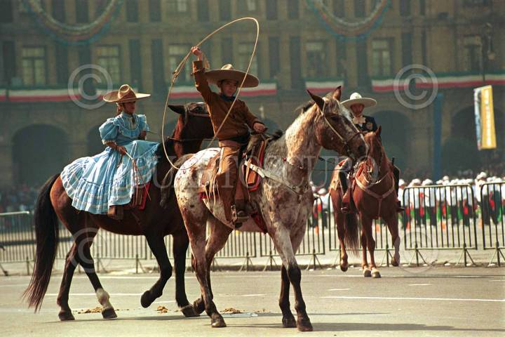 Los charros desfilaron en primer lugar durante el desfile deportivo que se realizó por las principales avenidas de la capital. FOTO: VIctoria Valtierra/CUARTOSCURO.COM