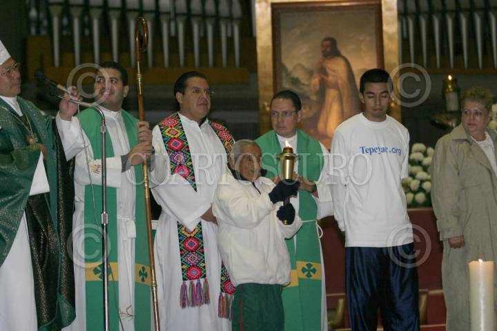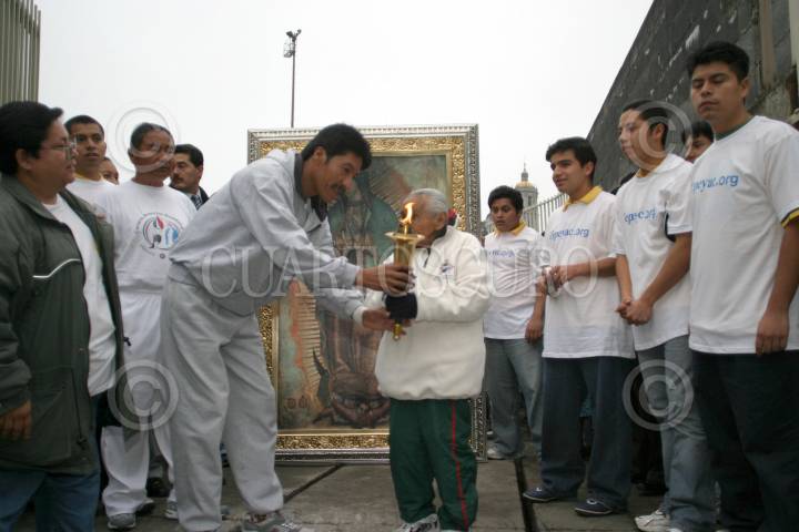 MEXICO, D.F. 10OCTUBRE2004.- La corredora Chayito porta la antorcha que los integrantes de la organización de migrantes Tepeyac, inició hacia Nueva York. FOTO: Nelly Salas/CUARTOSCURO.COM