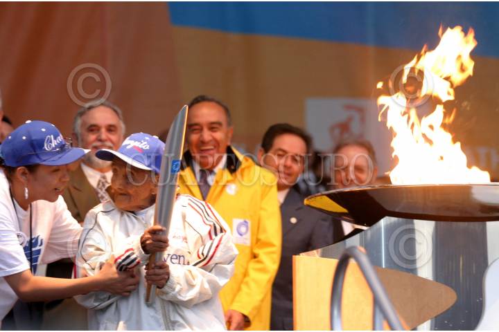 México, D.F., 15JUNIO2004.- Rosario Iglesias mejor conocida como "Doña Chayito", fue la última en portar la flama olímpica durante su recorrido por la Ciudad de México. FOTO: Moisés Pablo/CUARTOSCURO.COM