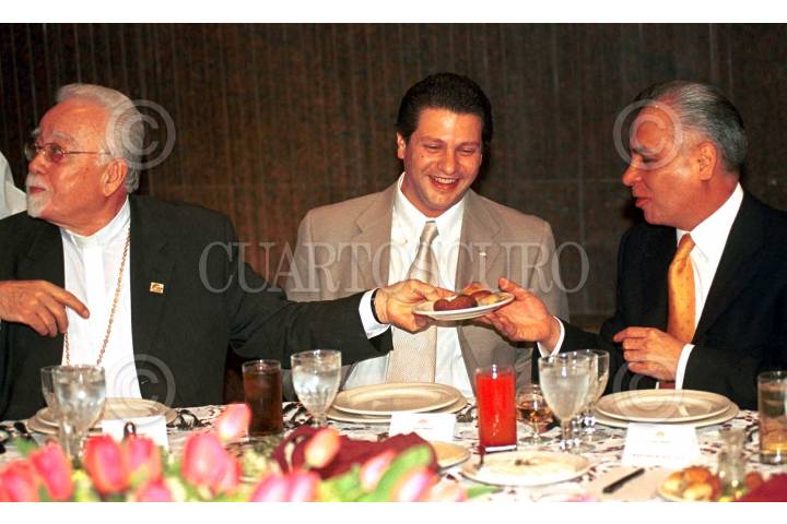 HUIXQUILUCAN, EDOMEX, 17ENERO2008.- El obispo Onesimo Cepeda, saluda y felicita a Antonio Chedrahui quien celebró su cumpleaños número 76 en el Club Bosque Real. FOTO: SAÚL LÓPEZ/CUARTOSCURO.COM