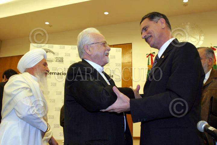 MEXICO, D.F., 17NOVIEMBRE2005.- Arjan Sigh Salmerón, Iglesia Sikh, Antonio Chedrahui, Iglesia Ortodoxa, Carlos María Abascal, Secretario de Gobernación y José Luis Soberanes, presidente de la CNDH, durante la celebración del Día Internacional de la Tolerancia, en la SEGOB. FOTO: Moisés Pablo/CUARTOSCURO.COM