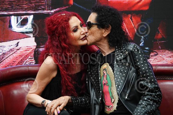 CIUDAD DE MÉXICO, 11JUNIO2025. El icónico roquero mexicano, Alex Lora junto a su esposa Chela Lora asistió a la presentación del nuevo teléfono Nubia Music 2, con un diseño en colaboración con la banda de El Tri. FOTO: EDGAR NEGRETE LIRA/CUARTOSCURO.COM