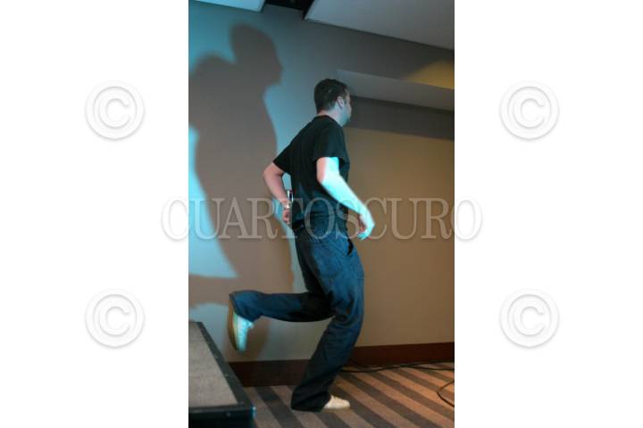 MEXICO, D.F. 03MAYO2005.- Tom Rowlands, integrante del dueto del Reino Unido, The Chemical Brothers al abandonar la sesión fotográfica de la presentación de su nuevo disco, ¨Push the Bottom¨. FOTO: Sandra Perdomo/CUARTOSCURO.COM
