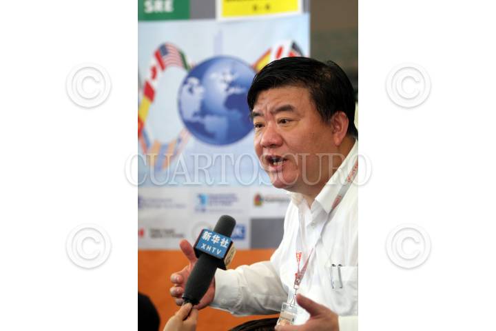 CANCÚN, QUINTANA ROO, 03JULIO2009.- Chen Zhu, Ministro de Salud de China, durante una entrevista a medios internacionales, en el marco de la reunión de alto nivel "Lecciones Aprendidas de la influenza A-H1N1. El ministro chino, justificó la actuación de su gobierno contra México, ante el brote de influenza humana FOTO: AMARANTA PRIETO/CUARTOSCURO.COM