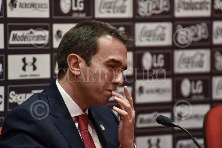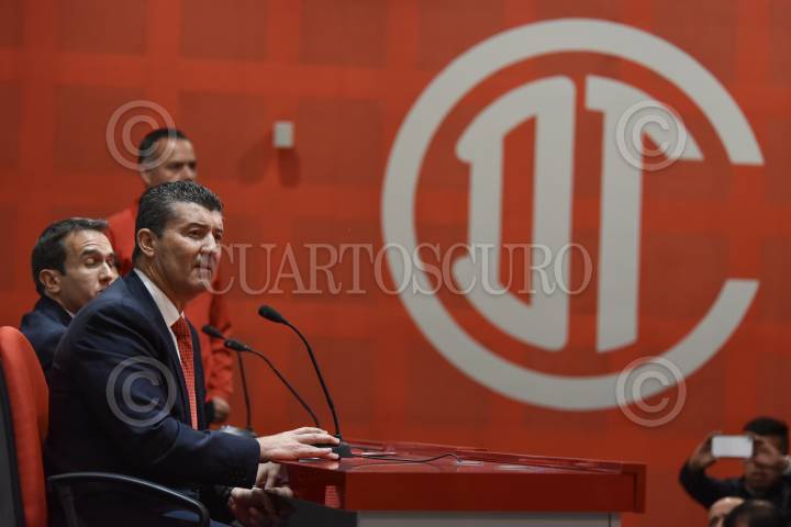 TOLUCA, ESTADO DE MÉXICO, 02DICIEMBRE2019.- Francisco Suinaga presidente del Club Deportivo Toluca durante la presentación de José Manuel de la Torre como nuevo Director Técnico de la escuadra escarlata. FOTO: CRISANTA ESPINOSA AGUILAR /CUARTOSCURO.COM