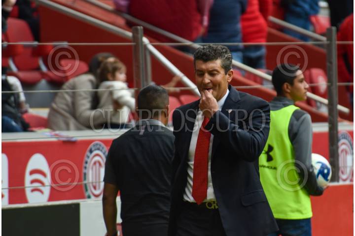 José Manuel "Chepo" de la Torre, director técnico del Toluca, da instrucciones desde el banquillo.